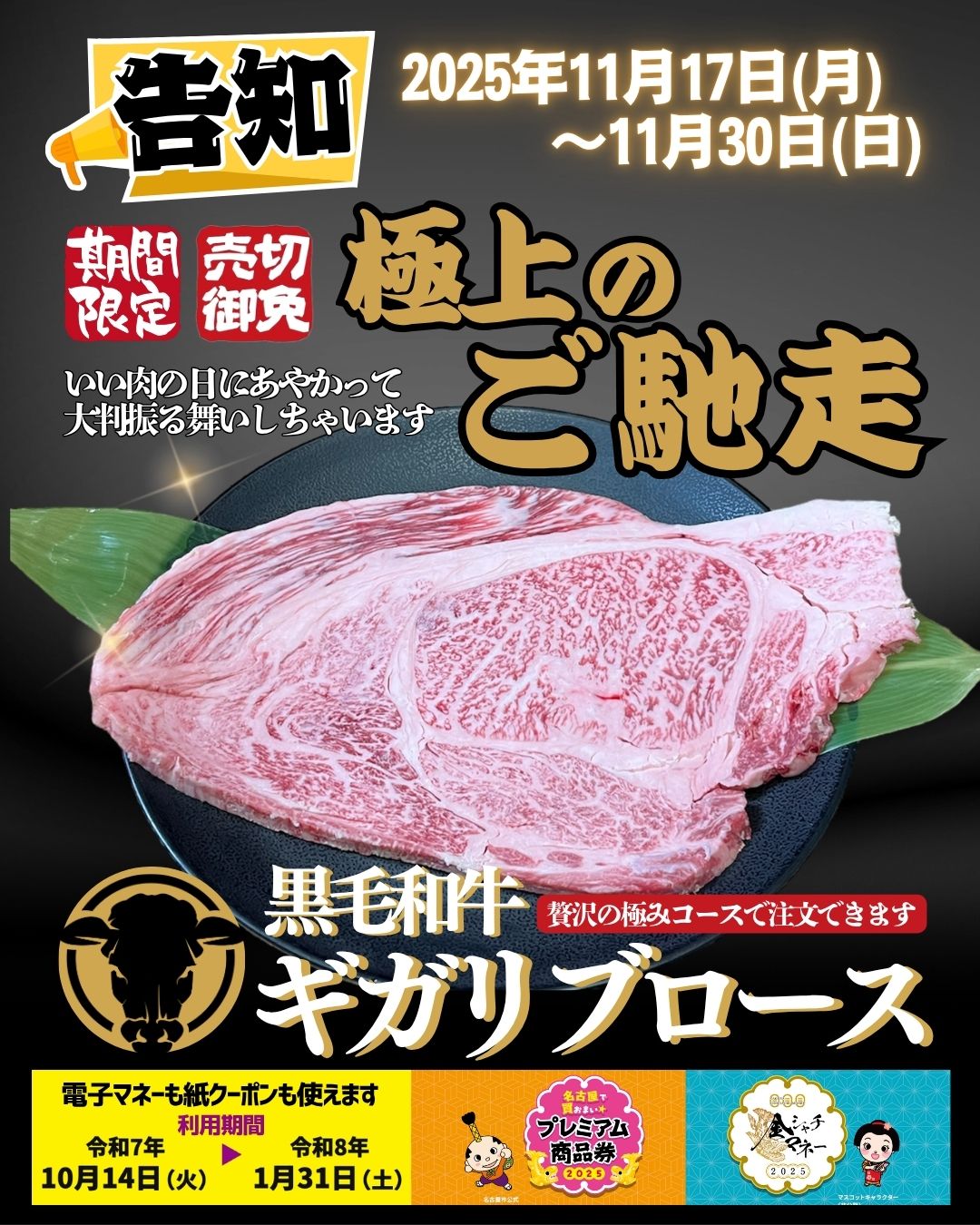 黒毛和牛ギガリブロースを大盤振る舞いします