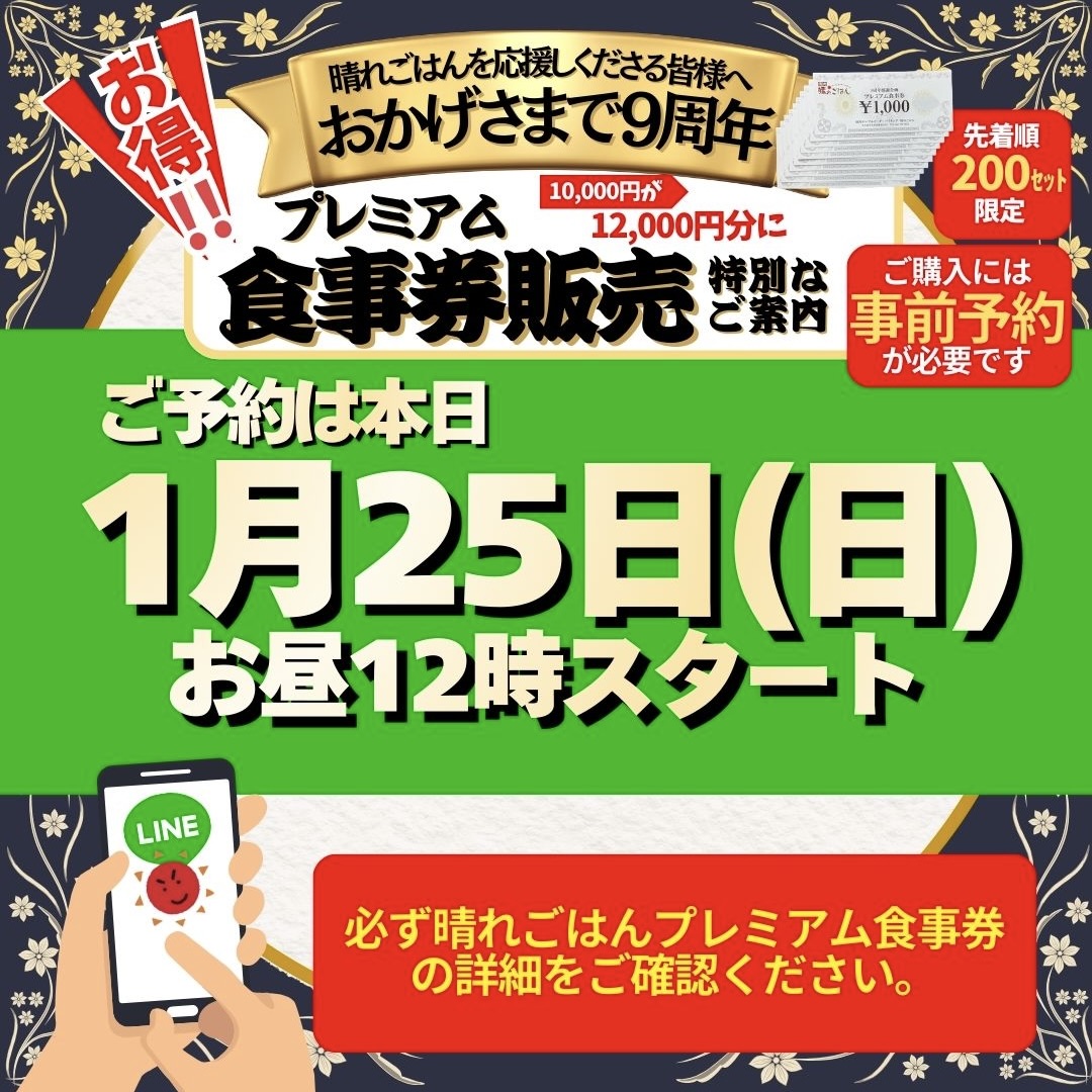 ⏩9周年晴れごはんプレミアム食事券の予約は