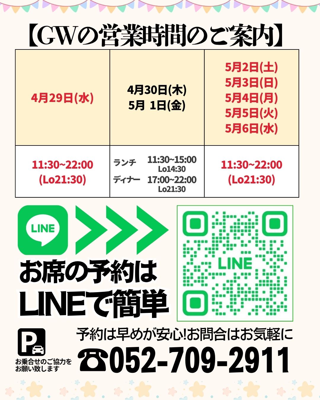 GW中のご予約も
