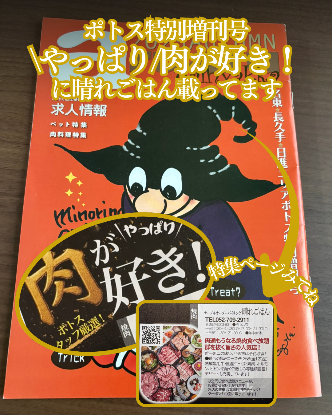 こんにちは 先月から配布されてる 名東*長久手*日進エリアのポトス特別増刊号 \やっぱり/肉が好き! の特集ペ […]